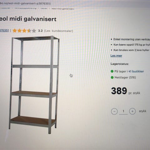 Praktisk lagerhylle/reol. Justerbare hyller.