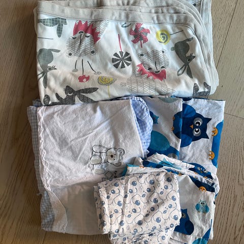 Str dynetrekk 117x109, putevar 36x54, 1 laken til barnevogn , 2 laken til spjælseng