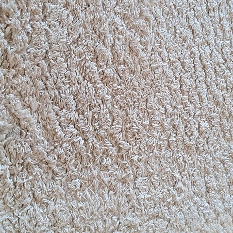 Teppet har ligget i en hytte i forbindelse med styling. Filt som legges under følger med.