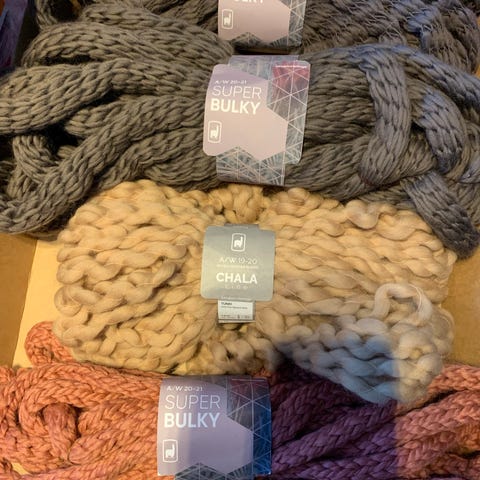 Selger Hooked RibbonXL garn. Det brune er ca. 250 gram, altså samme vekt som et uåpnet nøste. Det beige er på ca. 44 gram. Kan sende mot at kjøper betaler frakt😊