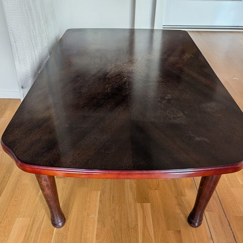 Hjørnebord i eik gis bort. Meget pent. 70x70cm