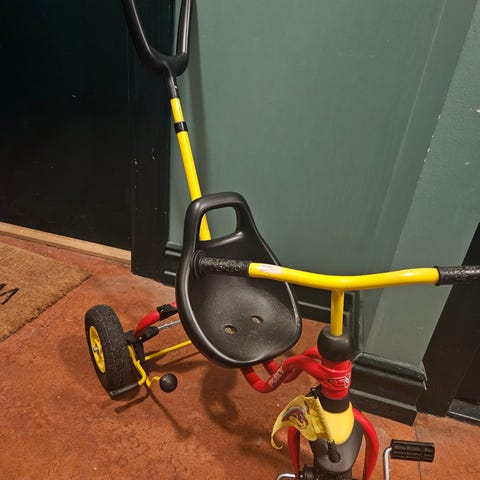 Yngri trehjulssykkel med håndtak