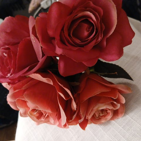 Masse grønst og blomster som er på og uten pinne, til å bruke til dekorasjon i blomsterskum.