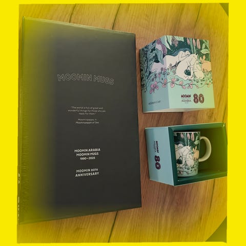 ▪︎ Pakkedeal Moomin 80 th anniversary bok med minikopp+ moomin totebag/ handlenett + moominsday 2024 kopp 3400,-