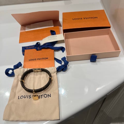 Louis vuitton armbånd lær gullbelagt dame