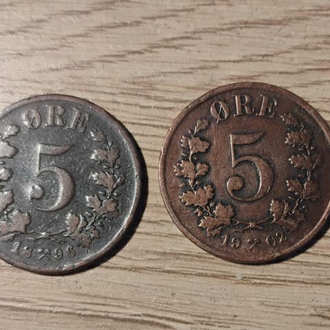 3 stk , 5 øre 1876-1896-1907, Norge, Se bilder for kvalitet