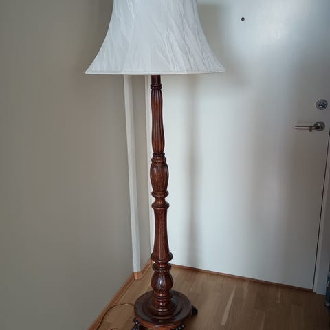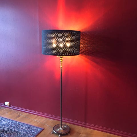 Stålampe høyde 163 cm, med 1 + 2 pærer ( 2 brytere ). Pen lampe i messing, med løs skjerm.