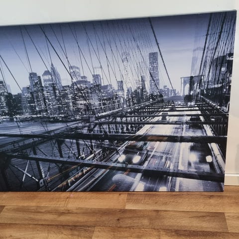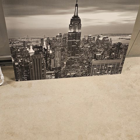 IKEA bilde med motiv av Empire State Building i svart-hvitt med innslag av bruntoner. Bildet leveres i en rektangulær, svart ramme med lys passepartout. Egner seg som veggdekor i stue, gang, kontor eller soverom.