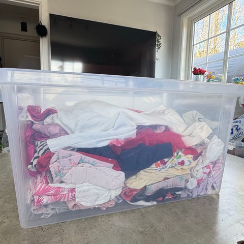 Rydder loftet og prøver å kvitte oss med endel klær som ikke brukes lengre.