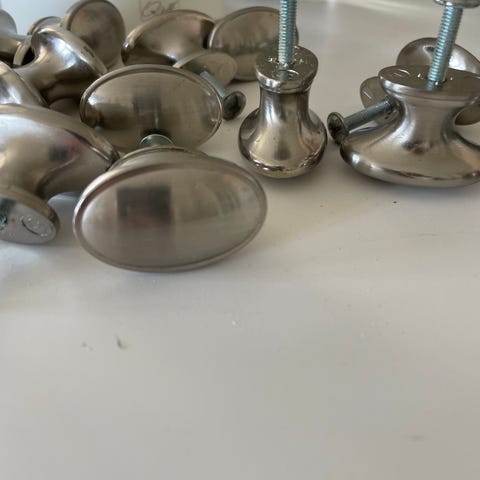 Selger 23 knotter til kjøkken skap/skuffer el lignende. Følger med skruer. Noen bruksmerker, men i god stand. Nypris ca 900kr, selges for 300kr.