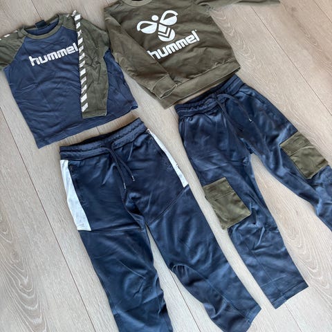 Treningsbukse og genser fra Hummel i str 104. Farge grønn.