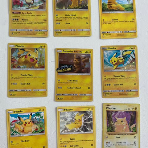 Pokémon Pikachu samlekort i gul kortstokk. Kortene viser ulike illustrasjoner og varianter av Pikachu fra Pokémon-serien. Egner seg som samlekort for Pokémon-entusiaster eller som tillegg til eksisterende samling.