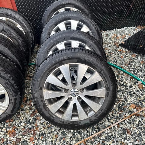 Jeg selger et sett med Vw vinterpiggdekk med veldig gode dekk. De har kjørt ca. 300 miles. Felgene har slitasjemerker fordi de ble brukt om vinteren, men dekkene er som nye. Felgene ble brukt på en Vw Golf 7-modell. Men de passer også til andre Vw-, Audi-, Seat- og Skoda-modeller. Jeg sender ikke. Du må hente felgene selv. Foretrukket betalingsmåte er kontanter.
