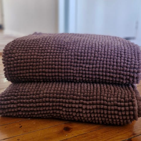 Teppe som nytt, brukt til kaniner ett par ganger men ikke brukt mer da vi ikke har kaniner lenger. Farge rosa, sort og grått.