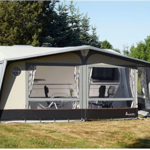 Har vært brukt på ein Adria Adora 613 og ein Solifer 630. Eg har dessverre lite bilde av teltet når det er satt opp, men eg har lagt ut bilde frå innsiden og bilde frå annonsen frå då eg kjøpte det i fjor. Teltet bør få seg ein vask, men vatnet på campingen er ikkje satt på for sesongen, så eg får ikkje vasket det før salg. Eg har brukt teltet på fastplass, så det er nok nokre skruehull i bunnen på kappa der lektene har stått. Det følger også med teppe som fulgte med når eg kjøpte teltet.