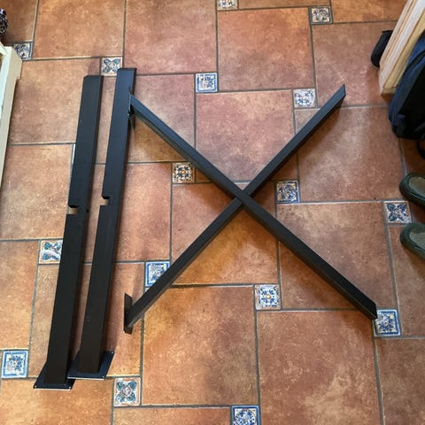 To solide bordbein som tåler tunge bordplater. Jeg fikk desverre ikke brukt disse selv. De fremstår som nye. Selges for sterkt redusert pris. Må hentes.