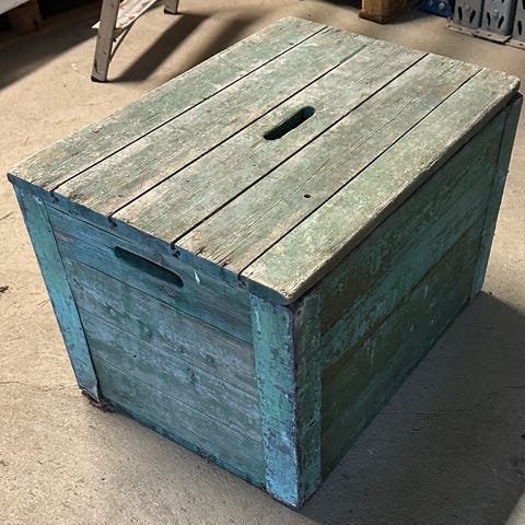 Trekasse med sinkede hjørner. Innvendig ca. mål: 570 x 245 x H 225 mm