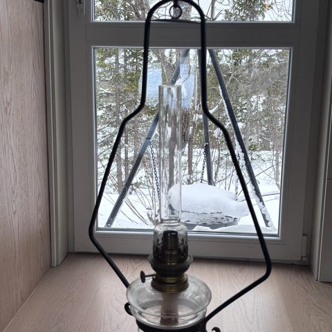 antikk parafinlampe. 47,5cm.