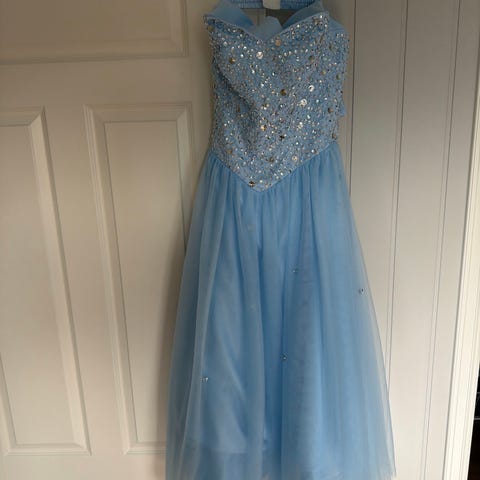 Ballkjole i turkis i valgfritt knyting forand eller bak. Str xxs ukjent merke fra Thailand og brukt 1 kveld av datter på 12 år og bruker 152-158 str.