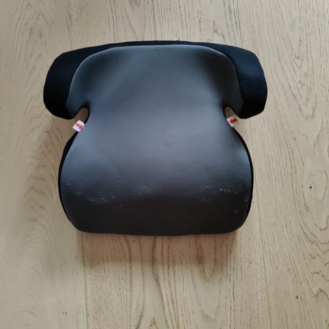 Sittepute bilstol svart farge. Sitteputen er beregnet for bruk i bil sammen med bilens trepunktsbelte. Den har polstret sitteflate. Undersiden har tydelig merking og instruksjoner for montering og bruk. Egnet for større barn som har vokst ut av vanlig barnesete.
