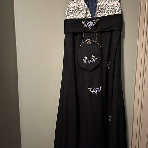 Pent brukt. Følger med hodepynt og sjal. Obs er sydd en rift nede på skjørtet.