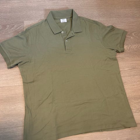 Mango pique poloskjorte for herre i størrelse L. Skjorten er blå med finmønstret struktur i stoffet og klassisk krage med knappestolpe og to knapper. Materiale i bomull. Kortermet modell som passer til hverdagsbruk og uformelle anledninger.
