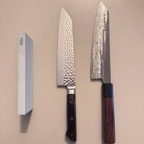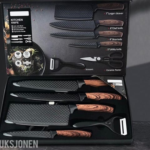 Christiania 1739 TOKYO 3 deler kjøkkenkniver i rustfritt hamret stål, svart utførelse. Settet består av en liten universalkniv, en santokukniv og en kokkekniv, alle med svarte blader og håndtak med strukturert grep. Knivene er egnet til ulike oppgaver på kjøkkenet som kutting av grønnsaker, kjøtt og andre råvarer. Leveres i eske med formtilpasset innlegg for oppbevaring.