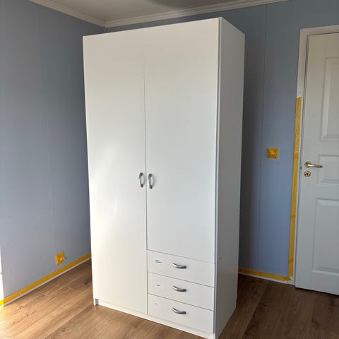 Skap i metall som kan låses. 1 nøkkel per skap medfølger. Er vel et garderobeskap opprinnelig. Kan passe i garasje, bod etc. Sender ikke.