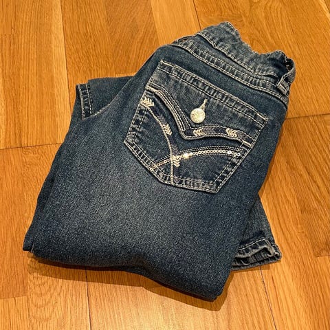 Gina Tricot Young jeans for jente i størrelse 170. Buksen er laget i blå denim og har klassisk femlommersmodell med knapp og glidelås i front. Baklommene har dekorative sømmer og knapp. Passer til hverdagsbruk og kan kombineres med ulike topper og gensere.