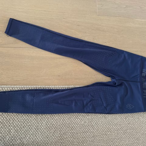 We Are Fit treningstights for dame i størrelse S. Tightsen har hvitt liv med «WE ARE FIT» trykk og et svart-hvitt mønster på bena. Produsert i et elastisk materiale med blanding av polyester og spandex, som gir god stretch og bevegelsesfrihet. Egnet til fitness og annen trening innendørs og utendørs.