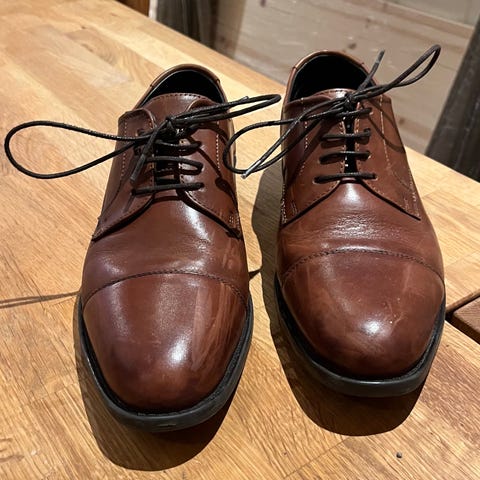 Noen overflatiske merker på tuppen etter litt dansing. Godt mulig disse forsvinner med litt pussing, har ikke prøvd det selv.