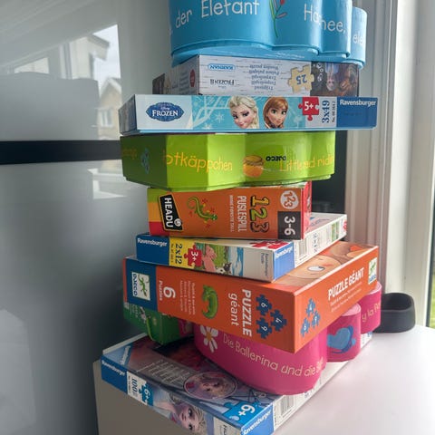 Blandet pakke med ulike brettspill, puslespill og leker. Pakken inneholder flere forskjellige typer spill og aktiviteter for barn og familie, blant annet brettspill, kortspill og små aktivitetsleker. Spillene har varierende tema og vanskelighetsgrad, og egner seg til bruk hjemme eller på hytta. Se bilder for oversikt over innholdet i pakken.
