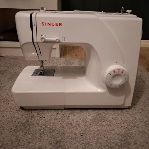 Litt brukt, fungerer som den skal. Følger med nåler og diverse utstyr. Selges fordi jeg planlegger å kjøpe en symaskin som kan sy i skinn.