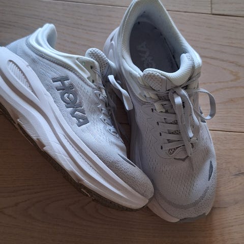 Hoka joggesko i størrelse 41 1/3. Skoene er svart med hvit såle. Skoene ble for smale og selges av den grunn. Nypris 2400kr
