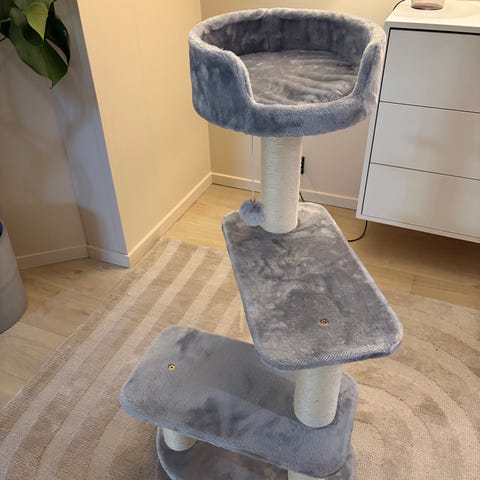Kloretre med flere platåer og med en koselig soveplass øverst. Størrelse: 95 x 50 x 50 cm.