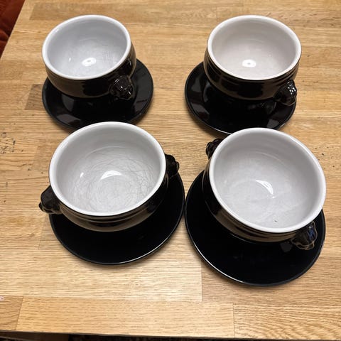 6 fine suppeboller. Usikker på merke. Kan brukes til te ol også. Ganske store i størrelsen.
