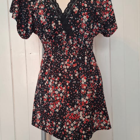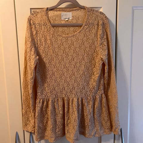 Toppen har et vakkert blondemønster og feminin fasong som gjør den veldig elegant.