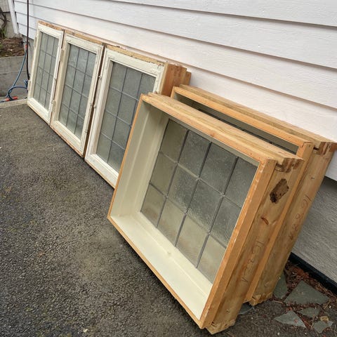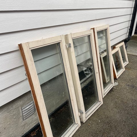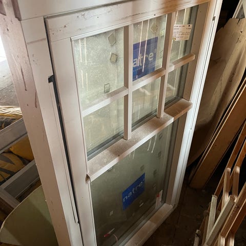 Hvite vinduer med sprosser. Vinduer med rammer og glassfelt inndelt i ruter. Egnet til montering i bolig eller hytte der man ønsker klassisk uttrykk med sprosser.