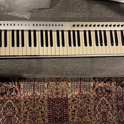 Keyboardet fungerer 100% teknisk. Det har stått i et rom med dagslys, så tangentene på høyre side har fått noe gulning i plasten. Dette er kun kosmetisk – tastene er fortsatt like presise og gode å spille på.