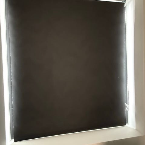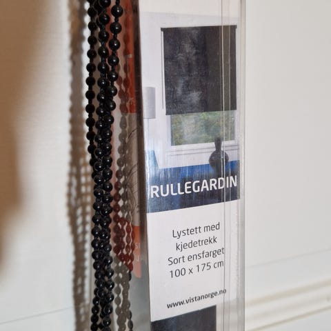 Selger sort rullegardin for mørklegging av soverom med oppheng og drasnor.