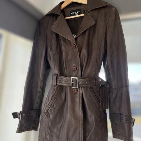 Selger en elegant og tidløs trenchcoat i ekte skinn av høy kvalitet.