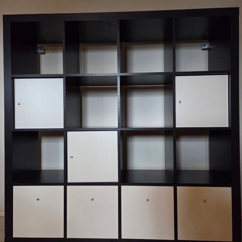IKEA hylle med kuber og dører skuffemoduler hvit rød svart