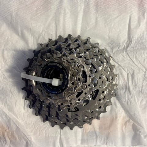 Pent brukt Recon monoblokk kassett for Shimano 12-delt. Kassett med utveksling 15–28 tenner (15-16-17-18-19-20-21-22-23-24-25-28T) i ett stykke Cr-Mo stål.