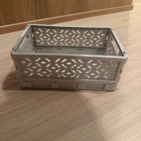 Selling a practical storage lot with foldable plastic crates and one transparent storage box with lid.