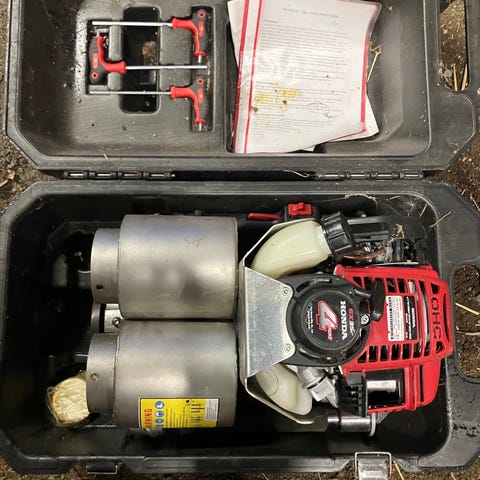 Vinsjen er drevet av en totaktsmotor, noe som er veldig praktisk hvis man bruker motorsag. Motoren har industrikvalitet og har 5 års garanti, også ved bruk i næring. Det er fortsatt mer enn 4 år igjen på garantien. Kvittering medfølger.