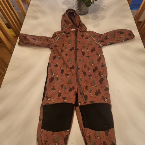 Lun og god utedress i softshell i str 98 / 3 år. Kosmetisk slitasje på forsterkede partier som kne/rumpe.