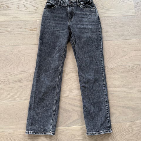 Lindex jeans bukse for jente i størrelse 152. Buksen er laget i blå denim med vasket/mønstret effekt. Klassisk 5-lommersmodell med beltehemper og glidelås med knapp i livet. Passer til hverdagsbruk og kan kombineres med ulike overdeler for et avslappet uttrykk.