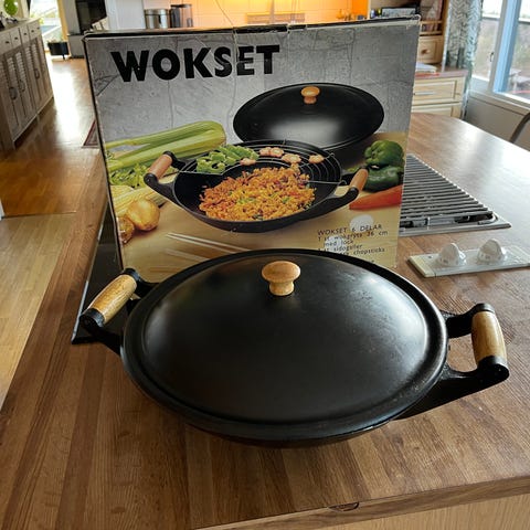 Ny og ubrukt Bodum Chambord støpejernswok med glasslokk