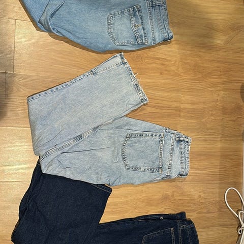 Selger fem bukser. Du finner annonse for hver bukse på profilen min, der kan du se bak siden, lappen, try on osv. Selger de fordi de ikke brukes lenger, er ikke en reseller 💖 pris kan diskuteres