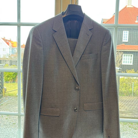 Jeg er 186cm høy og selger denne fine dressen, siden den er blitt hakket for liten. Dressen er nylig renset og strøket og er klar til å tas i bruk for ny eier.